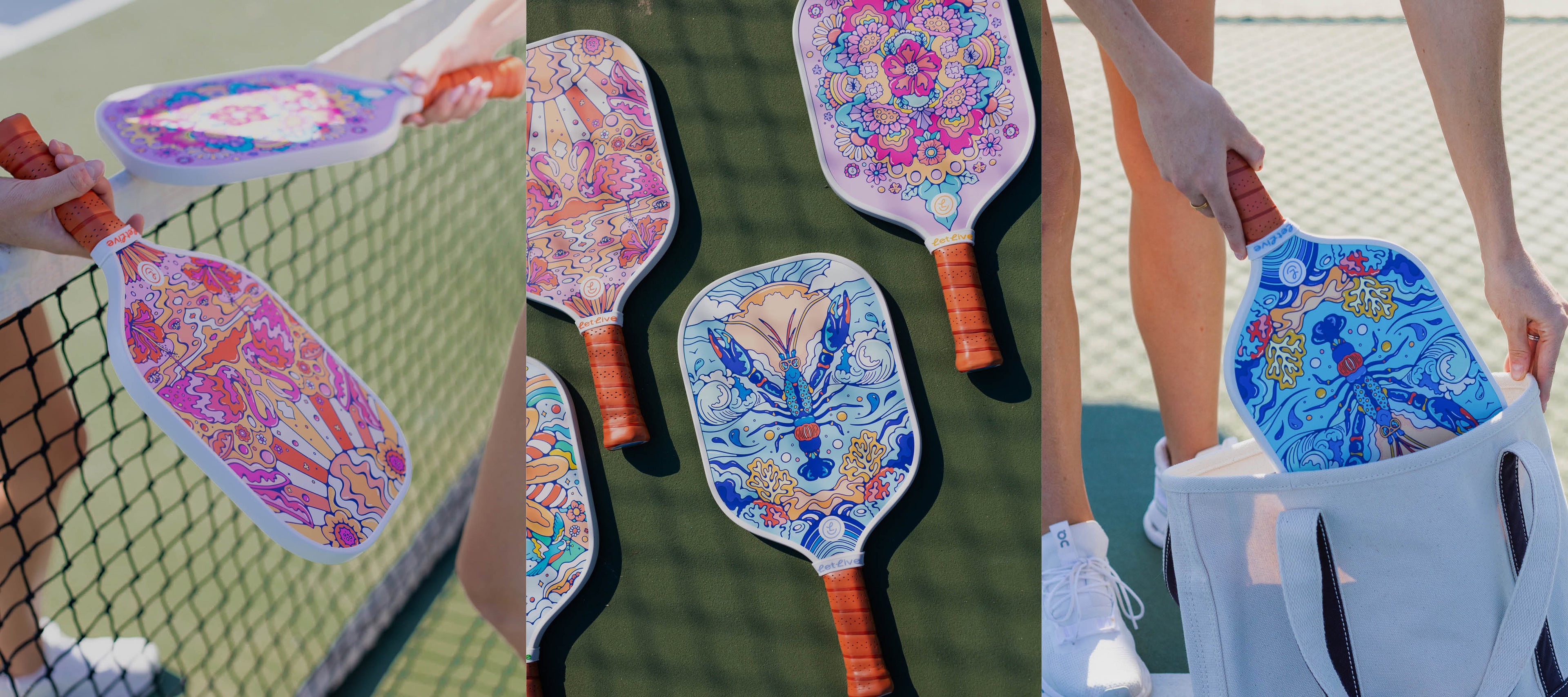 - Stand-Out Designs: Retro-inspired illustrations from the talented artist, Lively Scout, will have everyone on the court asking “where’d you get that paddle?!”.